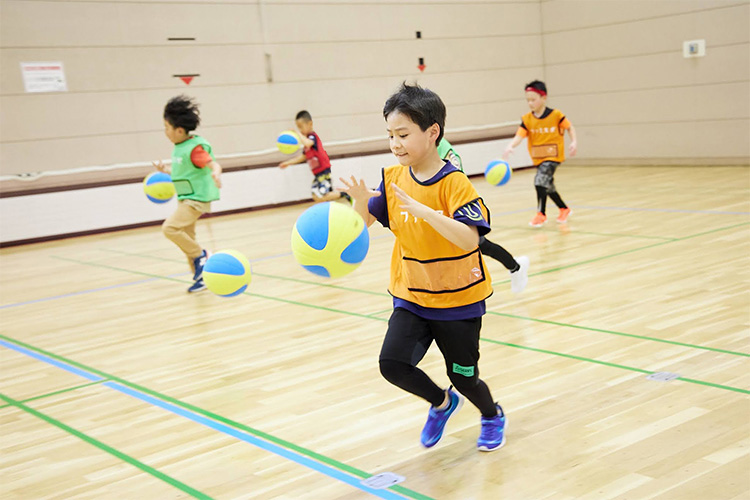 「走る・跳ぶ・投げる・よける」などの36種類の基本動作を、鬼ごっこやボール遊び、サーキットなどを楽しい“スポーツ遊び”に変えて提供。